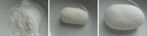 1、面团的制作:饺子粉500克,用温水,加少许盐,和成软硬适中的面团。一开始面团没有和光滑,隔10分钟,再揉。如此3、4次,面团就十分光滑好用了。