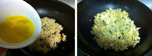 3、倒入蛋液翻炒均匀即可。