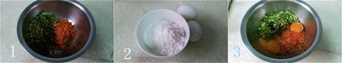 主料:芹菜适量,胡萝卜适量,鸭蛋2个,面粉大半碗,香葱2根