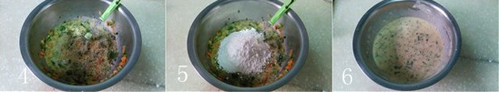2、水的量要控制好,加入芹菜的面糊太稀的话,蛋饼不容易成型。