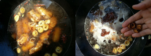 10、水烧开时,加入生抽、干山楂片。改小火,慢炖30分钟。