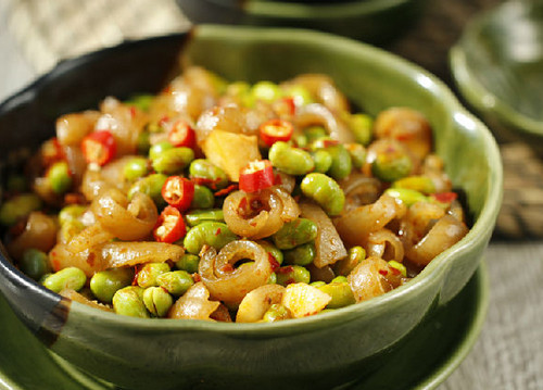 这道猪皮辣豆的做法特别简单,而且营养也非常丰富。这道菜是用猪皮,毛豆米等制作而成,猪肉皮晶莹剔透、入口即化,毛豆米鲜嫩清香。在加入郫县豆瓣酱炒出来咸鲜微辣,色泽红亮,荤素搭配,动物蛋白和植物蛋白互补,再配上一点啤酒,滋味真美。