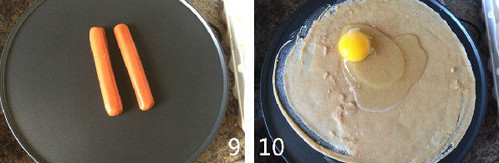 10、舀一勺面糊,摊成薄饼,打上一颗蛋。