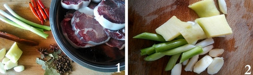 配料:泡椒5个,花椒一小把,生姜一块,大蒜五瓣,葱适量,麻辣红油适量,生抽适量,花椒油少许,香葱一棵,蚝油少许,凉白开少许,八角两个,桂皮一段,香叶两片
