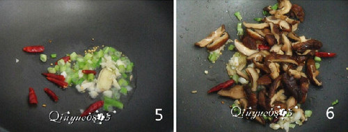 6、放入香菇翻炒。