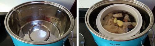 10、轻轻转动内锅盖子,使水槽里的水均匀分布。