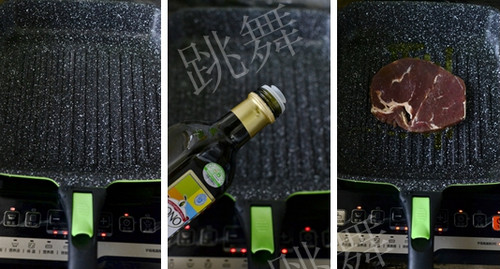 5、将牛排放入煎制,根据自己口感吧,6分-8分都可以。
