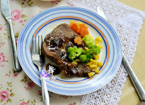 主料:沙朗牛排一份,西兰花,胡萝卜,玉米粒