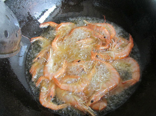 7、倒入炸好的虾。