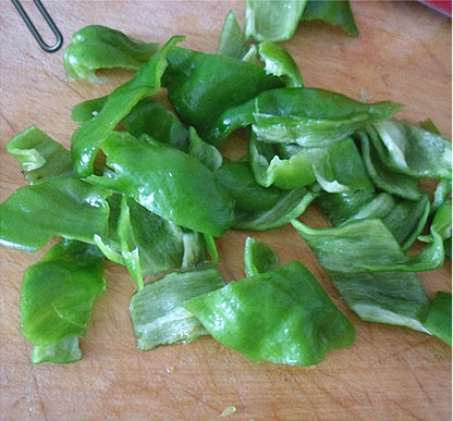 4、尖椒切块备用。
