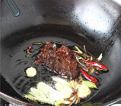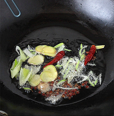 配料:葱姜,豆瓣酱,干红椒,花椒,料酒,白糖,生抽,盐