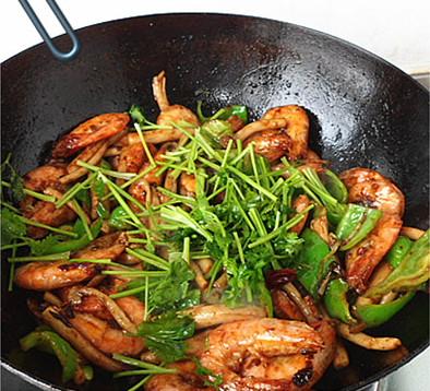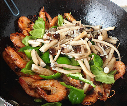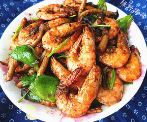 主料:虾,茶树菇,尖椒,香菜
