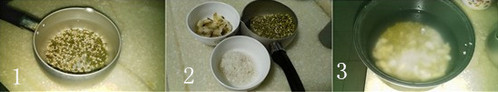 1、绿豆、薏米清洗干净,浸泡过夜。