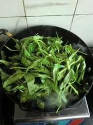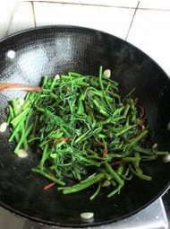 1、炒空心菜要大火快炒,可以先放一些白糖翻炒空心菜,可使空心菜碧绿清脆。