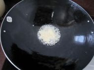 2、置锅于火上,倒入适量的油,烧热后倒入蒜泥爆香。
