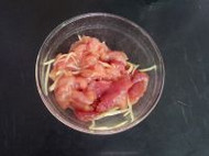 2、将瘦肉洗净切成片,芥菜洗净切小段,姜切丝。