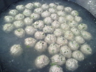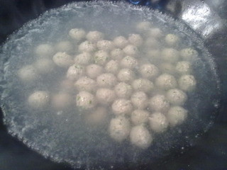3、净锅烧水,开了以后,关小火把丸子汆出来。