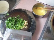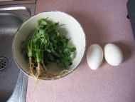 2、鹅蛋打成蛋液,香菜切碎备用。