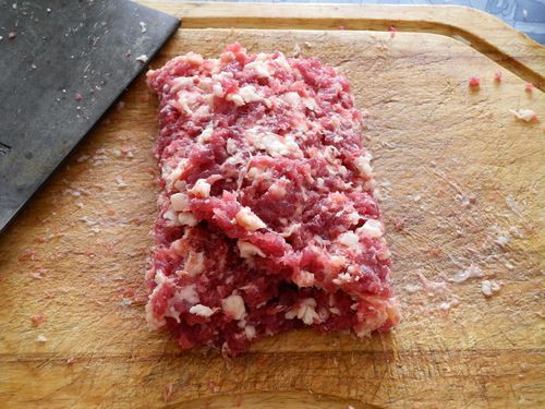 1、猪肉剁成肉馅。