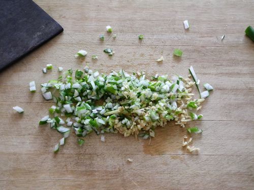 2、葱姜分别切成末。