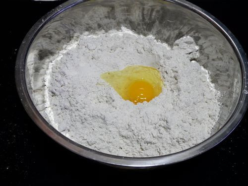 7、在面粉中加入鸡蛋。