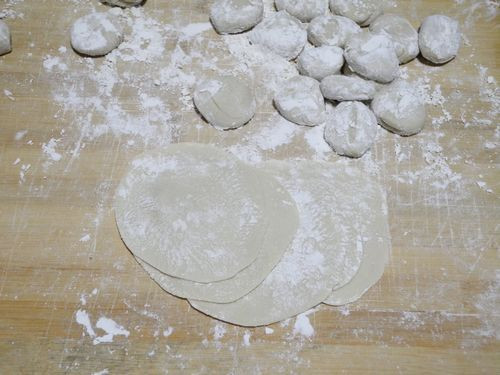 11、揉好的面下剂子擀成饺子皮。