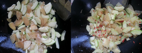 5、土豆片九成熟时加入西葫芦片,翻炒。