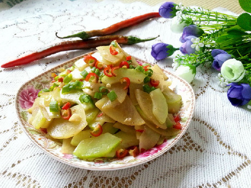 这土豆西葫芦片是一道小炒菜,做法快捷,简单方便,材料随手可得,这两种食材容易存放,是一道上班族的快手菜下饭菜。西葫芦富含水分可润泽肌肤,可提高免疫力,有减肥,抗癌,抗病毒和预防肿瘤的作用。食用还具有清热利尿,除烦止渴,润肺止咳,消肿散结的功效。