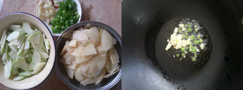 主料:土豆50克,西葫芦50克,香葱2根,蒜瓣2个