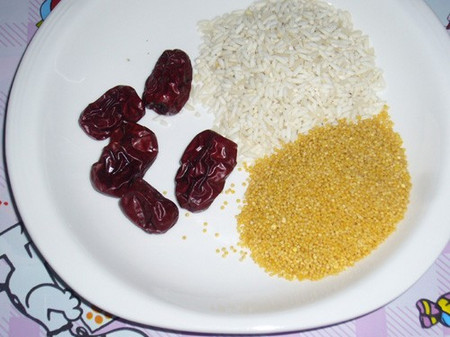 主料:大米50g,小米50g,大枣5粒,山药150g