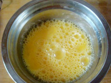 2、鸡蛋磕到碗里,搅打均匀。