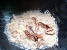 5、放入香菇丝翻炒。