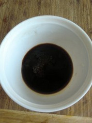 2、取一个小碗加入生抽,香醋,糖,鸡精混合拌均匀。