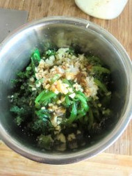 3、菠菜焯烫过凉沥干水分。
