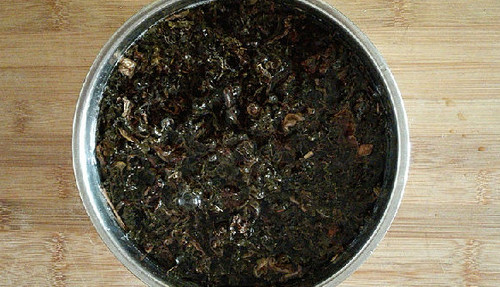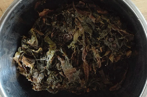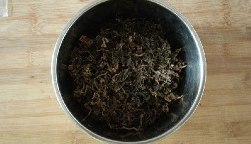 5、将浸泡好的梅干菜用手挤干水分备用。