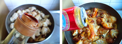 7、加入盐,糖,生抽,蚝油,老抽翻炒至上色。