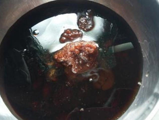 3、备酱料:半碗(饭碗)酱油、半碗绍兴酒、1大匙蚝油、2大匙冰糖2.调味下手切勿过重,炖好后若有不足再加咸味。