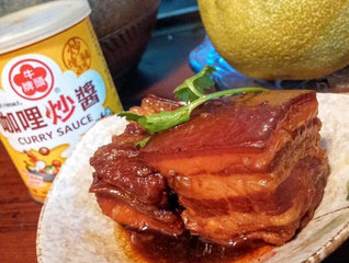 电锅版东坡肉不需要绑棉线,利用电锅也能卤出软嫩Q弹的油亮东坡肉喔!除了绍兴酒外,特别还加入咖喱沙茶酱提味,层次分明的五花肉裹上一层浓郁酱汁,谁抵挡得住这诱惑呢?