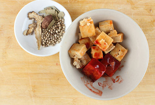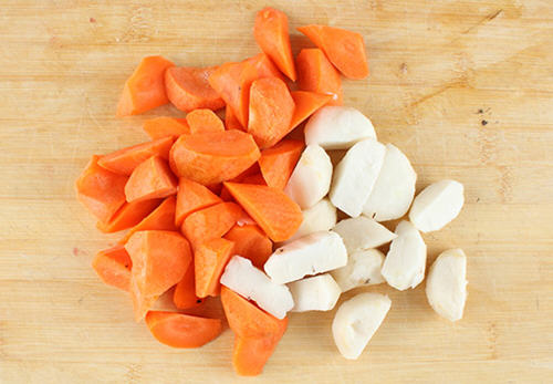配料:马蹄 胡萝卜适量、白腐乳90克 红腐乳30克 黄酒30克 葱姜适量