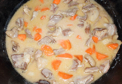 5、待羊腩还有二十分钟就焖够的时候,将胡萝卜块用少许油炒一下,然后倒进羊腩锅中,再焖至软就可以了