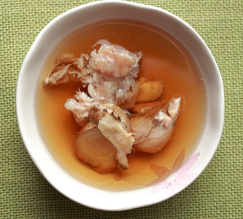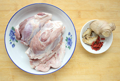 配料:姜一块 、当归三大片、 枸杞十粒 、黄酒50克