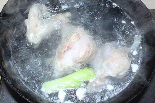 1.姜切大厚片,羊腿剁开用清水泡两小时备用