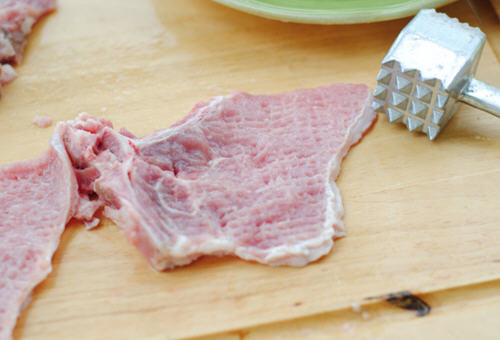 3、敲打大排也很重要,肉的纤维被打断口感才嫩,要是没有肉锤,就用刀背来敲打哦,这一步一定不可以少。