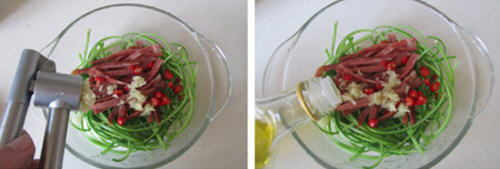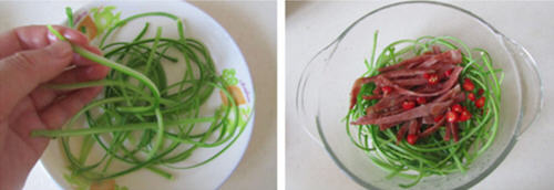 培根拌蒜薹制作技巧: