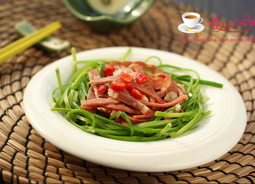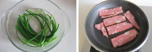 培根拌蒜薹的做法: