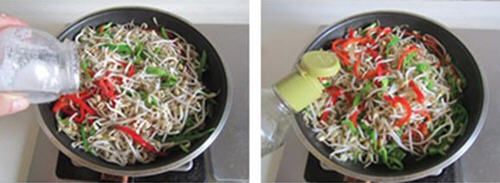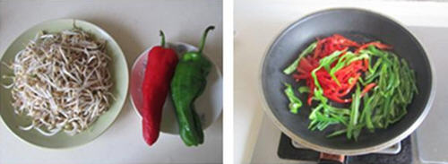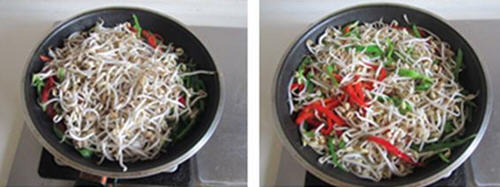双椒炒绿豆芽的做法: