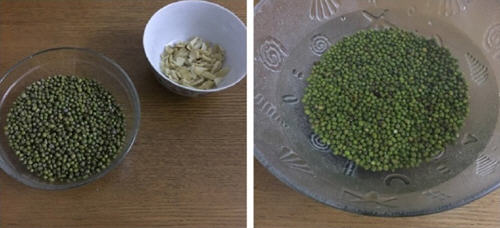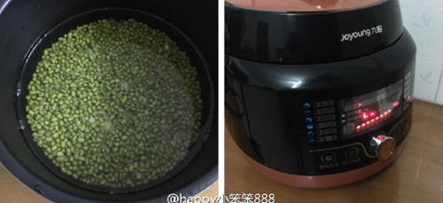 2、绿豆洗净加清水浸泡。