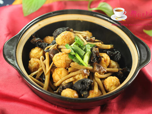 主料:鹌鹑蛋、茶树菇、黑木耳、青蒜