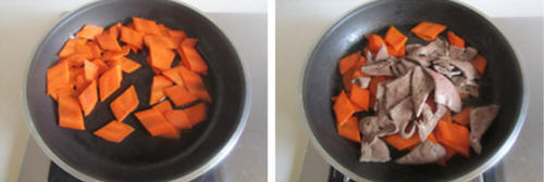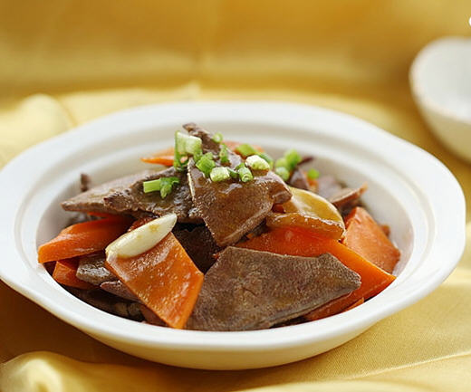 红萝卜爆猪肝是很简单的一道家常菜,制作时需要用大火来爆炒,五分钟就能搞定,它味道鲜嫩可口,不仅是小朋友,而且对于电脑族也是必吃的明目营养美食,注意做这个菜在把猪肝在腌制的时候放入点啤酒能去腥,为了让菜色更加漂亮最好提前调配好酱汁。
