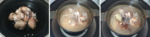 5、锅中加清水煮开,然后放入猪蹄,盖上盖子煮开后,